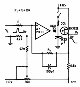 Este circuito foi obtido numa documentação americana de 1969. O amplificador operacional e o FET podem ser substituídos por tipos equivalentes modernos.
