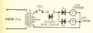 Encontramos este circuito numa Eletrônica Popular de setembro de 1967. O circuito pode ser modificado para usar LEDs em série com resistores de 470 ohms.