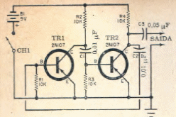 Este circuito foi obtido numa Eletrônica Popular de janeiro de 1967. Os transistores são da época, mas podem ser usados equivalentes.