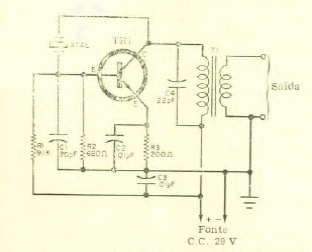 Este circuito foi encontrado numa Eletrônica Popular de abril de 1968. O transistor é de uso geral da época e a frequência depende do cristal.