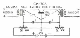 Este é um circuito dos anos 50, dos tempos em que o transistor ainda era chamado por alguns de tríodo de cristal. O circuito tem ajustes de polarização para maior ganho e menor distorção.