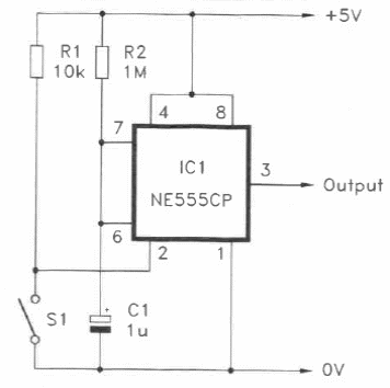 Este circuito faz com que um pulso produzido por S1 tenha duração constante determinada por R1 e C1.