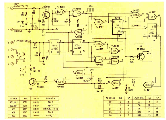 Este circuito sofisticado foi encontrado na revista Radio Electronics de novembro de 1978. Baseado em lógico CMOS ele tem diversos tipos de temporização, controlando o relé do limpador.