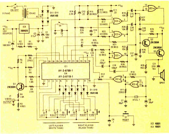 Este videogame de 1978 saiu numa Radio Electronics de novembro deste ano. O circuito se baseia em mais um integrado da série AY-3 devendo ser acoplado a um televisor analógico.