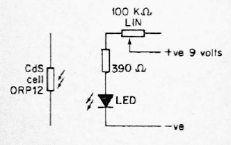 Este potenciômetro controlado por tensão usando um LDR foi encontrado numa documentação inglesa. O LDR é comum e o LED de qualquer tipo.