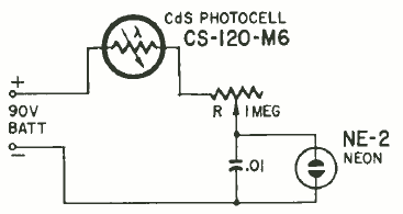 Este circuito com LDR e lâmpada neon tem sua frequência de operação dada pela luz. O circuito é de uma Radio Electronics de julho de 1963. Pode ser usado com finalidade didática ou experimental. C1 pode ser alterado conforme a frequência desejada.
