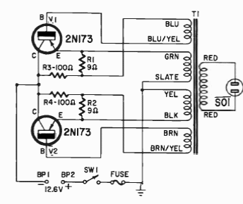 Encontramos este circuito numa publicação de 1966. Os componentes são da época. Não foram dadas informações completas sobre o transformador.