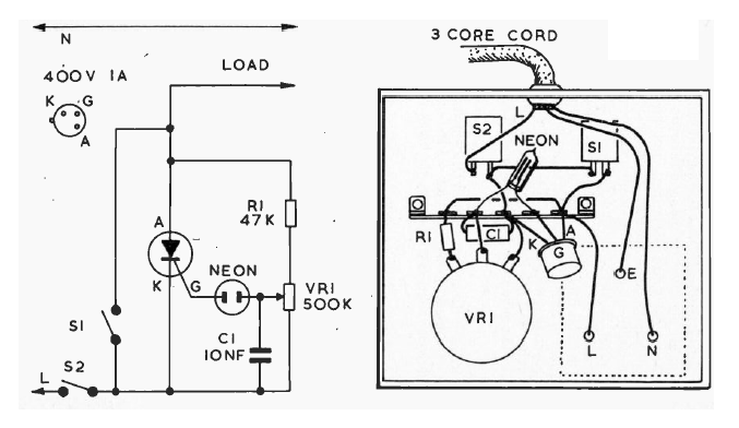 Este bem detalhado Dimmer foi encontrado numa documentação inglesa dos anos 90. O SCR pode ser um equivalente moderno como o TIC106. O circuito só é indicado para lâmpadas incandescentes.