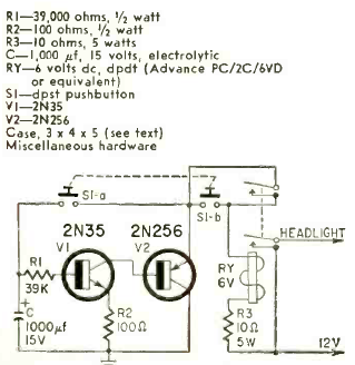 A finalidade deste circuito é apagar uma lâmpada depois de alguns segundos ou minutos dependendo do capacitor. O circuito é de uma revista Radio Electronics de setembro de 1961.