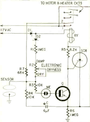 Este circuito com SCR saiu na revista Radio Electronics de julho de 1967. O circuito usa um transistor de alta tensão no disparo do SCR. Para SCRs sensíveis ele pode ser eliminado com a retirada de R5.