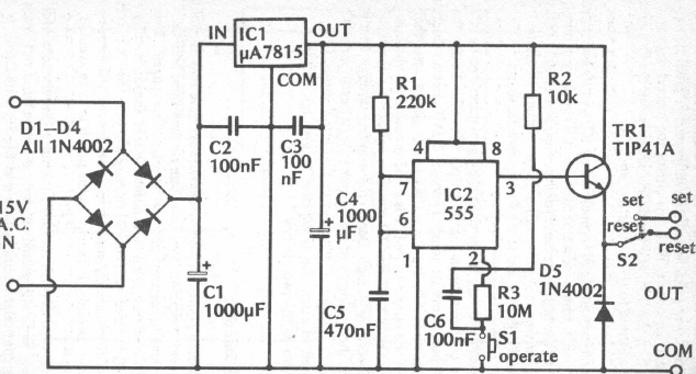 Com base em componentes comuns, este circuito foi encontrado numa publicação inglesa. O circuito é alimentado diretamente pelo secundário de um transformador.
