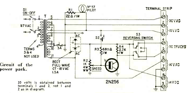 Esta fonte para modelismo foi encontrada na revista Radio Elecronics de fevereiro de 1961. O transistor deve ser dotado de calor e o transformador com 1,5 A de secundário.