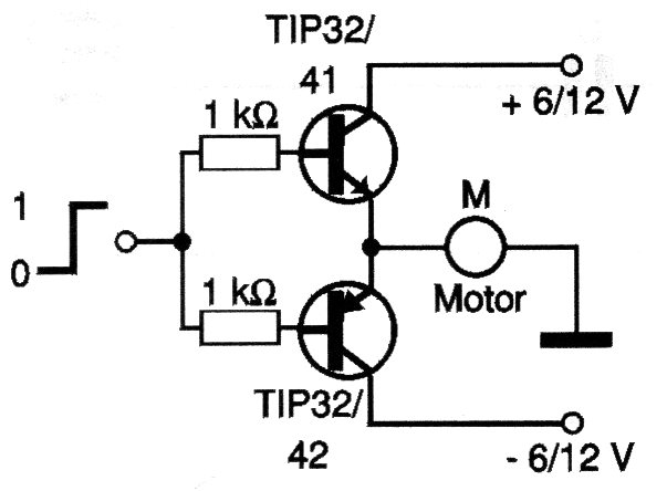 Este é um controle de sentido de rotação para um pequeno motor até uns 2 A com os transistores indicados. O circuito pode ser utilizado como shield para microcontroladores ou em outras aplicações. Os transistores devem ser dotados de dissipadores de calor.