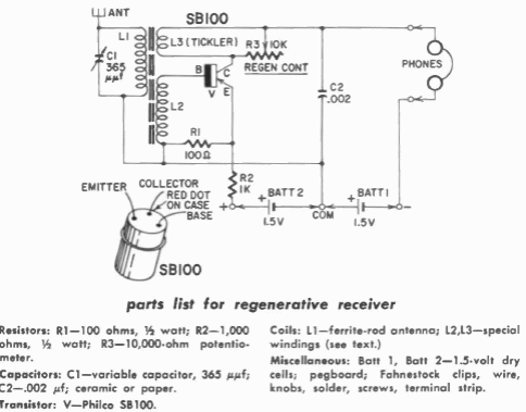Encontramos este receptor em documentação antiga. O transistor é de germânio e o fone deve ser de alta impedância.