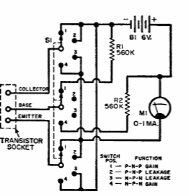 Encontramos este circuito numa documentação antiga. O instrumento pode ser um multímetro comum na escala correspondente de correntes.