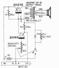 Este circuito foi encontrado numa publicação dos anos 50. O circuito usa transistores de germânio da época, sendo usado com sensores pouco sensíveis.