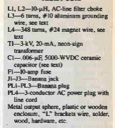 Esta é uma versão básica da bobina de Tesla que não usa dispositivos semicondutores, encontrada numa antiga Popular Electronics. O circuito usa um transformador do tipo usado em antigos anúncios neon de 3kV.
