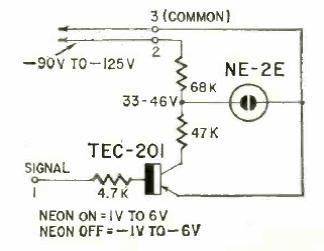Este circuito transistorizado simples é de uma publicação de 1950. Não havia LED naquela época tendo sido usado um engenhoso divisor de tensão com lâmpada neon permitindo a alimentação pela rede. O divisor deixava a lâmpada no limiar do disparo.