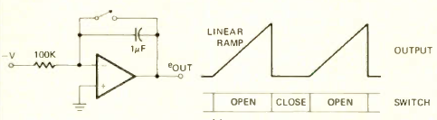 Este circuito de uma Radio Electronics de julho de 1975 usa qualquer operacional com fonte simétrica. A forma de onda é mostrada alo lado do diagrama.