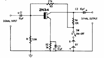 Esta etapa amplificadora foi encontrada numa publicação americana antiga. O transistor é de germânio e o ganho chega a -6 dB.