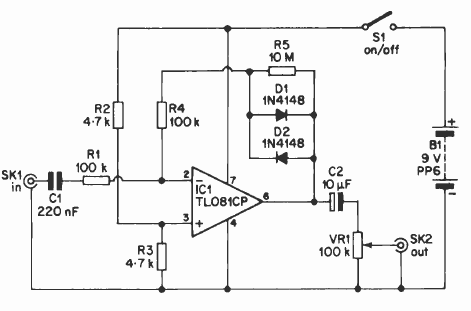Este simples efeito de distorção para guitarra foi encontrado numa documentação dos anos 90. O circuito é atual podendo ser usados amplificadores operacionais equivalentes.