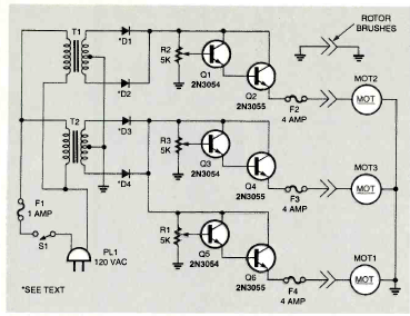 Este circuito experimental para um drone foi publicado num artigo de uma revista Radio Electronics de dezembro de 1987. O pequeno veículo flutua sobre a mesa ou outro local já que o controle é feito através de fios numa disposição de hélices de 3 eixos.