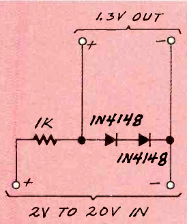 Este circuito se baseia na queda de tensão dos diodos em condução, da ordem de 1,6 a 1,7 V. A corrente é muito baixa e a entrada pode ficar na faixa de tensões indicada.