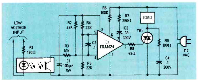 Encontramos este circuito na revista Radio Electronics de outubro de 19877. O circuito usa um componente integrado da época. O SCR deve ser de acordo com a carga e montado em dissipador de calor.