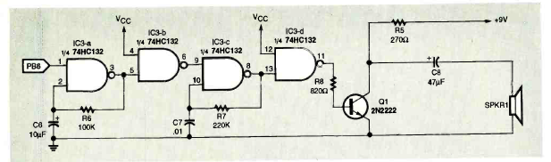 Este circuito para um sistema simples de alarme foi sugerido num artigo da revista Electronics Now. O circuito tem uma pequena etapa de potência que pode ser alterada.