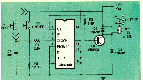 Encontrado na revista Electronics Now de julho de 1994, este circuito aciona um relé de até 12 V conforme a alimentação. O transistor pode ser de uso geral.