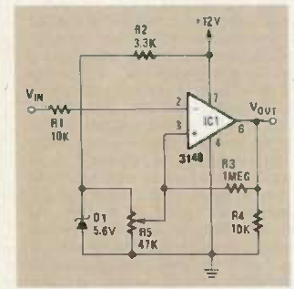 Encontramos ra revista Radio Electronics de junho de 1986. A tensão de referência é ajustada no zener. A alimentação deve ser maior que a da faixa de referências.