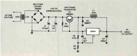 Este circuito de fonte hibrida foi encontrado na revista Electronics Now de agosto de 1997. O transistor de potência e o circuito integrado devem ser dotados de dissipadores de calor.