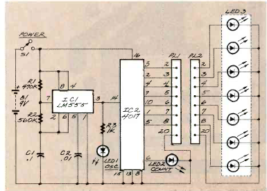 Encontrado na revista Radio Electronics de março de 1989, este circuito serve para testar cabos de impressoras e outros. A indicação é feita por LEDs.