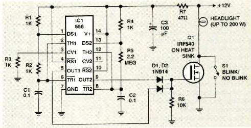 Este circuito faz com que a lâmpada alimentada oscile de brilho em 20% de intensidade. Pode ser usado em outras aplicações. Encontramos na revista Electronics Now de abril de 1998.