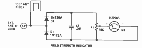Este simples circuito com instrumento analógico foi encontrado na revista Radio Electronics de outubro de 1977. Os diodos são de germânio, para maior sensibilidade.