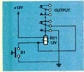 Na figura temos o modo de se ligar um relé de modo a se obter o efeito de trava. O circuito é de uma Electronics Now de junho de 1994.