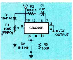 Encontrado na revista Electronics Now de agosto de 1994, este circuito CMOS usa o 4046 que é pouco comum em nossos dias.