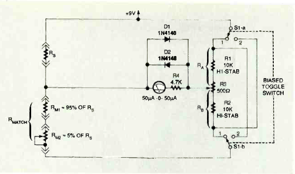 A finalidade deste circuito é encontrar dois resistores com valores muito próximos para projetos críticos. O circuito foi encontrado na revista Electronics Now de novembro de 1995.