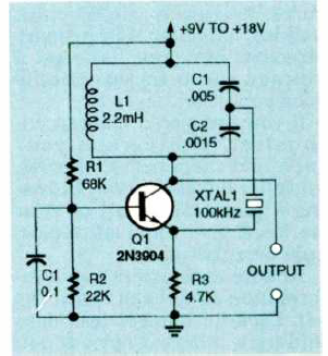Este oscilador controlado por cristal foi encontrado na revista Electronics Now de janeiro de 1994. Podem ser usados cristais de outras frequências.