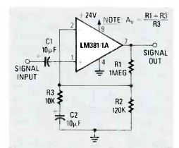 Encontramos este circuito de alto ganho com o preamplificador LM381 numa Radio Electronics de fevereiro de 1990. O circuito não precisa de fonte simétrica.