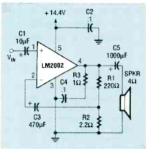 Esta é a configuração básica do TDA200. Encontramos esta aplicação num artigo da revista Radio Electronics de abril de 1990.