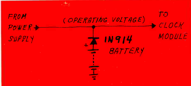 Na figura temos um modo simples de se ter a alimentação de emergência de um circuito de 9 V alimentado por fonte. Se a fonte falhar a bateria de 9 V entra em ação. Pode ser feito com baterias de outras tensões.