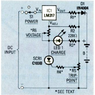 Este circuito foi encontrado na revista Radio Electronics de julho de 1986. A corrente máxima é de 1,5 A. O circuito integrado deve ser dotado de dissipador de calor.