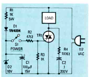 Este circuito foi encontrado na revista Radio Electronics de outubro de 1987. O triac deve ser de acordo com a carga controla e montado num dissipador de calor.