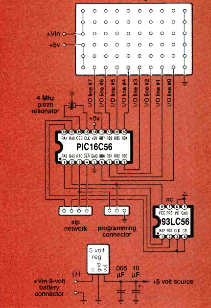 Encontrado na revista Electroics Now de agosto de 1993, este é o diagrama do conhecido módulo Basic Stamp usado em muitas montagens mecatrônicas que publicamos.