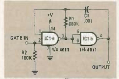 Encontramos este circuito na revista Radio Electronics de novembro de 1984. A frequência básica é dada por C1. A alimentação pode ficar entre 3 e 12 V.