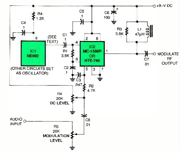 Encontramos este circuito que pode chegar aos 50 MHz na revista Electronics Now de fevereiro de 1997. Os circuitos integrados usados são poucos comuns atualmente.