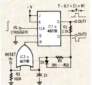 Encontramos este circuito na revista Radio Electronics de abril de 1988. O circuito pode ser resetado eletronicamente.
