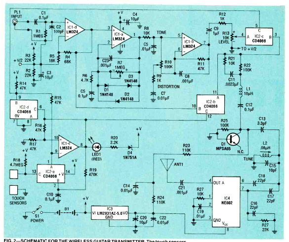 Este sofisticado transmissor foi encontrado na revista Electronics Now de junho de 1993. O transmissor consiste num circuito integrado dedicado da época.