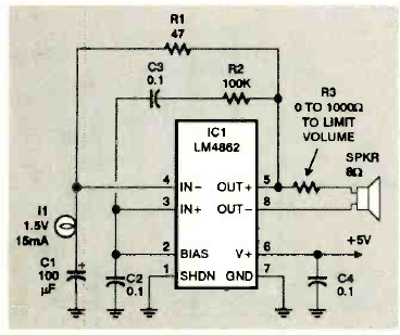 Utilizando uma pequena lâmpada incandescente como regulador este oscilador por ponte de Wien produz um sinal senoidal. O circuito é de uma revista Electronics Now de novembro de 1999.